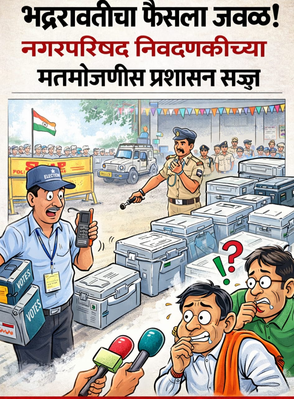 भद्रावती नगरपरिषद सार्वत्रिक निवडणूक, २०२५ अंतर्गत थेट नगराध्यक्ष व २९ नगरसेवक पदाच्या मतमोजणीसाठी प्रशासनाने संपूर्ण तयारी पूर्ण केली आहे. यासंदर्भात एक प्रसिद्ध पत्रक जाहीर केले त्यात, मतमोजणी प्रक्रिया दिनांक २१ डिसेंबर २०२५ रोजी सकाळी १०.०० वाजता शासकीय औद्योगिक प्रशिक्षण संस्था (आयटीआय), भद्रावती येथे होणार असल्याची माहिती देण्यात आली आहे.